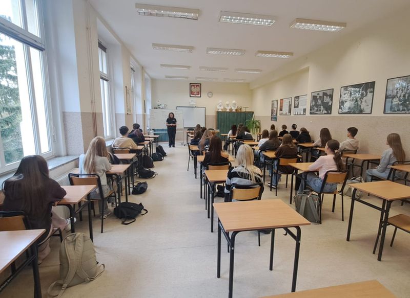W ubiegłym i bieżącym miesiącu aspirant Barbara Gaweł spotkała się z uczniami I Liceum Ogólnokształcącego imienia Jędrzeja Śniadeckiego. Osoby realizujące edukację w szkole średniej powoli wchodzą w dorosłość, a co za tym idzie mogą je spotkać nowe życiowe sytuacje.