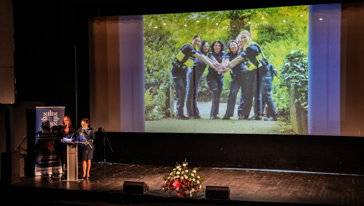 Uroczystość rozpoczął film oraz pokaz slajdów przedstawiający policjantki dawniej i dziś. Po nim na scenie był występ artystyczny przygotowany przez młode wokalistki ze Studia Piosenki i Tańca „Fart”. Następnie zaprezentowano fotografie dokumentujące liczne działania i projekty zrealizowane przez dzierżoniowską jednostkę w roku jubileuszowym.