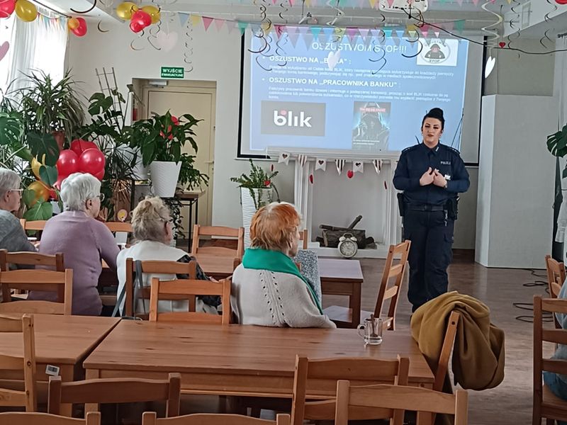 W ramach działań profilaktycznych realizowanych pod hasłem „Oszustwom Stop” aspirant Magdalena Szczerek spotkała się z osobami starszymi w Dziennym Domu Senior Plus w Dzierżoniowie. Celem wizyty było zwiększenie świadomości seniorów na temat zagrożeń związanych z działalnością oszustów.